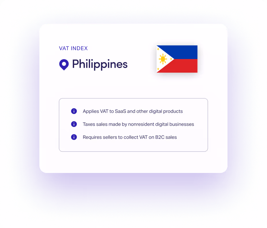 Is your product taxable in the Philippines? Get up-to-date rates, registration thresholds, and more from Anrok’s team of tax experts.